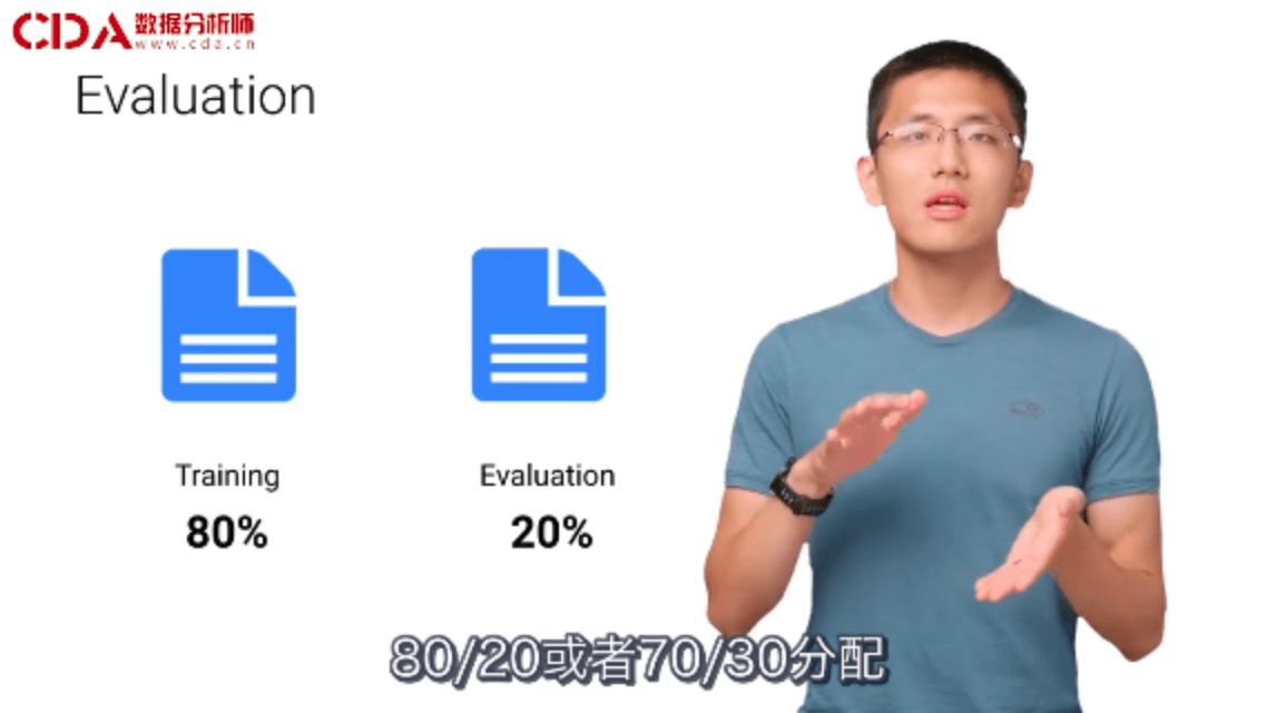 根据经验法则,我一般将训练和评估数据按照80/20或者70/30分配。大多情况下取决于原始源数据集的大小。如果数据很多可能就不需要太多的测试数据集。