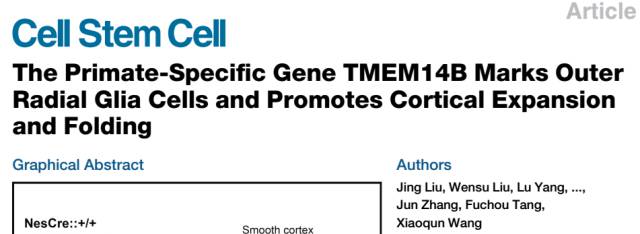 1.Liu et al., 2017, “The Primate-Specific Gene TMEM14B Marks Outer Radial Glia Cells and Promotes Cortical Expansion and Folding”,Cell Stem Cell.