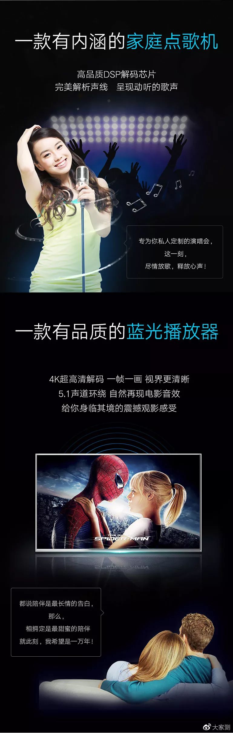 2、它是专业家庭KTV:内置DSP专业音效处理芯片,节省一台音效处理器的钱,拥有专业DJ调音效果,专业级人声美化技术,让歌声更扣人心弦!