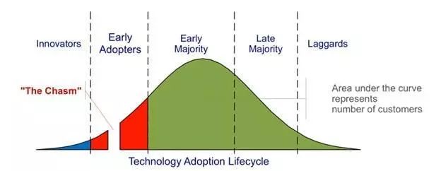 吴迎晖认为,在著名的技术采纳曲线中,翻译硬件还处在 Early Adopter 阶段,并且其中的 Gap 很难跨越。