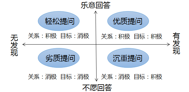 粟津恭一郎指出,提问有四种:轻松提问,劣质提问,沉重提问,优质提问。