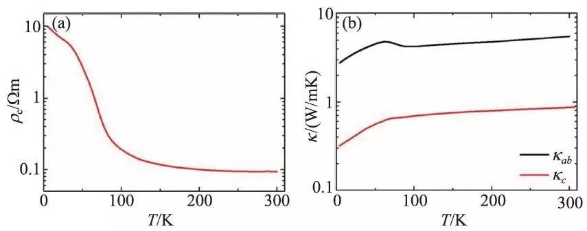图7 (a)BSCCO 单晶c 方向的电阻率与温度的关系;(b)ab 面、c方向的热导率与温度的关系