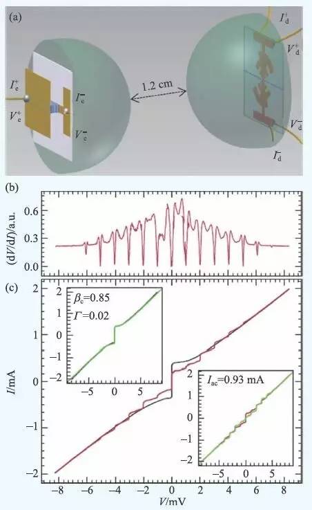 当被太赫兹波辐照时,约瑟夫森结的伏安特性曲线会产生变化,辐射功率较大时会产生一系列电压恒定的电流台阶(称为Shapiro 台阶)。基于此,高温超导约瑟夫森结检测器可作为直接检测器;另外,利用约瑟夫森结的高度非线性,可实现相干检测。