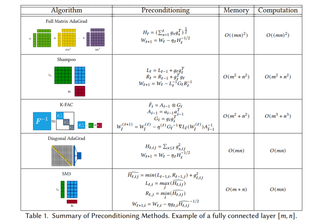 更大的模型通常需要更多的计算和内存资源来训练。训练这些模型所需的内存数量可能比单个GPU上可用的内存数量大几个数量级。在本节中,我们将看到一些流行的技术如何成功地在不影响模型性能的情况下降低训练神经网络的内存需求。第8.1节介绍了混合精度训练[72]如何使用更少的位来保留训练期间的权值和梯度,从而降低内存负担。第8.2节介绍了两种有效内存的自适应优化器,Adafactor[93]和SM3[10]。与上述方法正交,ZeRO[81]不改变模型优化方法,也不影响模型收敛,而是通过消除数据并行中的冗余来降低内存成本(章节8.3)。