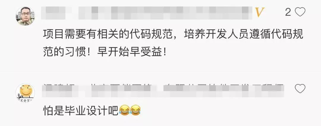 有网友则建议需要有相关的代码规范,培养开发人员遵循代码习惯的规范