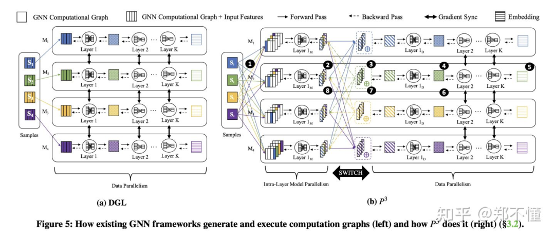 Background: GNN训练不同于传统DNN网络的的一个关键点是: DNN训练数据之间都是独立的,而图结构则是呈现一定的关联性。而且,对于图上的顶点和/或边,一般也都会带有一些高维的feature。一个K层的GNN网络,对于每个节点,都需要1-hop到k-hop的邻居构成该节点的computation graph。所以一般会使用neighborhood sampling来进一步降低整个computation graph的大小,来使其能够fit进GPU里。而且对于biliions node and edge级别的图,分布式训练就不可避免了。https://pic1.zhimg.com/80/v2-31e4a8ee85b76b46ce95083460e4e540_1440w.jpg