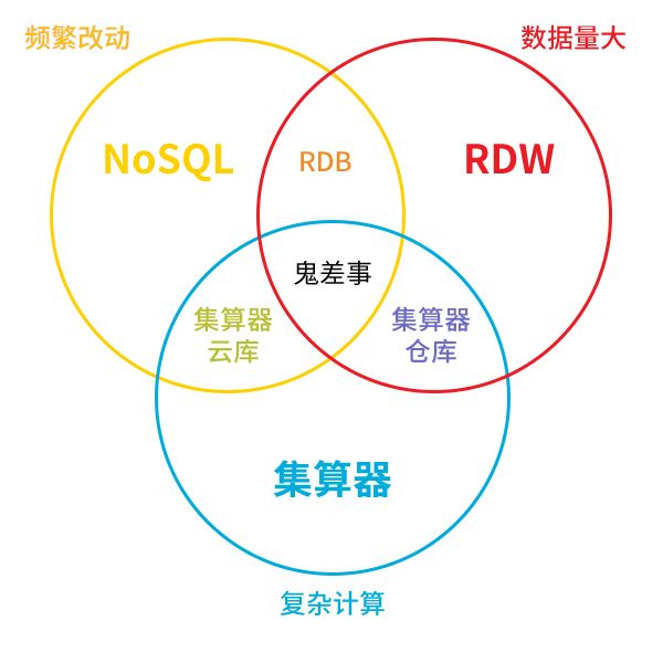 集算器是为了复杂计算而设计,可以实现更优的算法获得更好的性能。但如开始所述,目前的集文件又不支持改写,所以它只适合解决复杂运算,而难以面对频繁改的场景。集算器其实比RDW在大数据计算性能方面更好,不过作为计算引擎并不太关注存储,而大数据需求中还是会比较在意的可维护管理能力就要弱了。