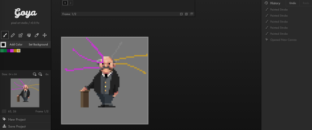 而 clojure 的一个 pixel editor,Goya,也用时间旅行的方式来做 undo / redo,非常简单: