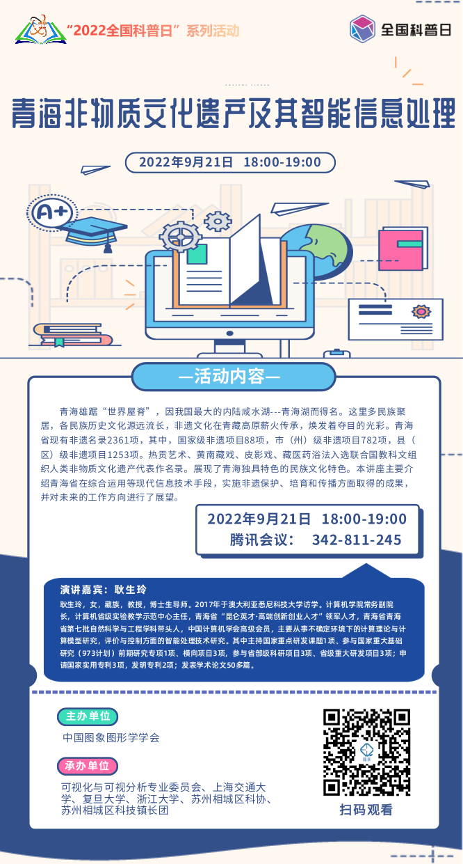 【2022全国科普日】“青海非物质文化遗产及其智能信息处理”讲座将于9月21日举办