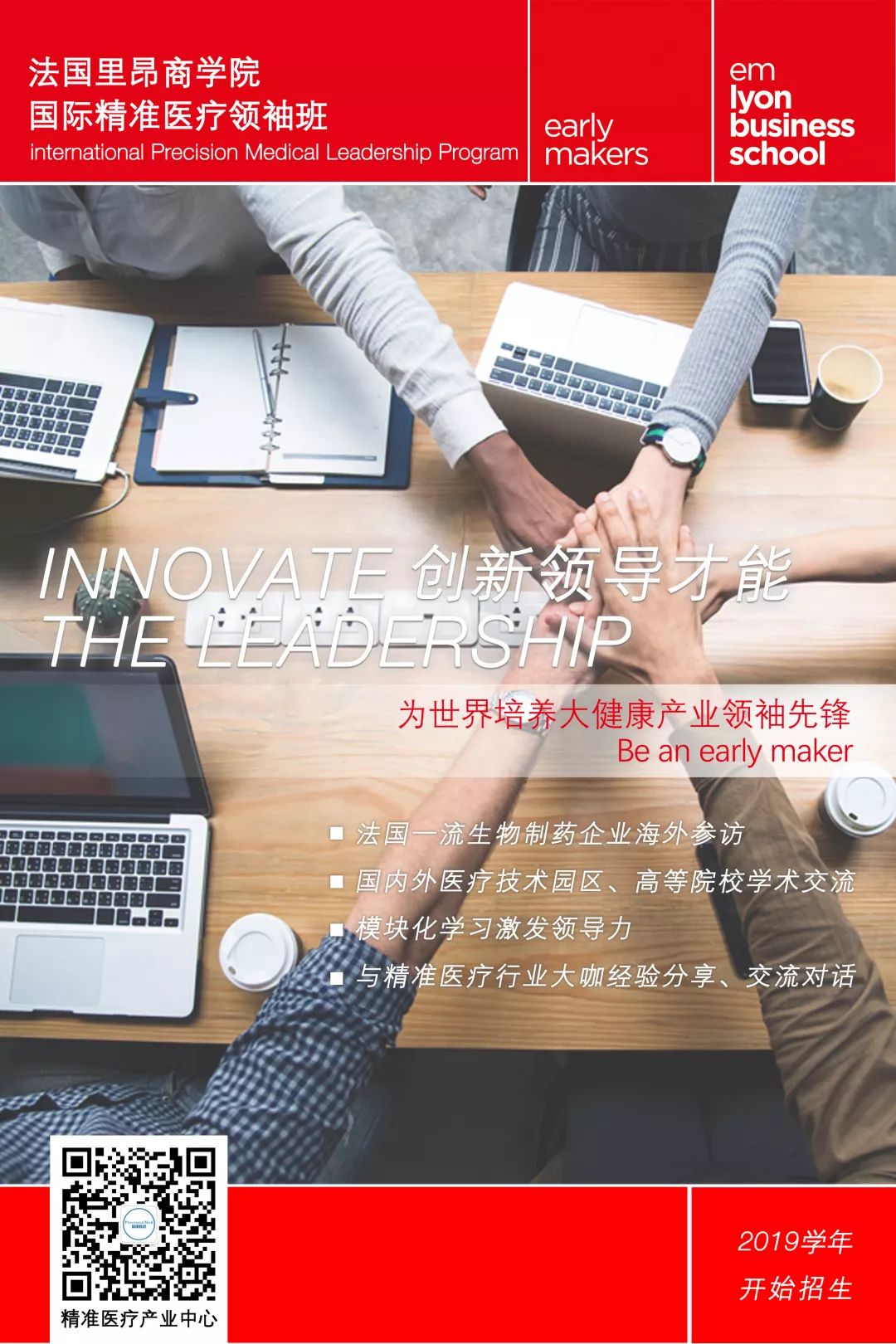 法国里昂商学院与精准医疗产业中心合作开启领导力课程项目,第一期课程已于2018年正式开课,通过专家权威授课和国际参访实践结合的方式,培养在未来全球变革中能适应和引领精准医疗及健康行业企业发展的管理者,以及能在不同国家、不同文化环境中推动企业创新发展的国际化企业家和优秀商业领导人才。
