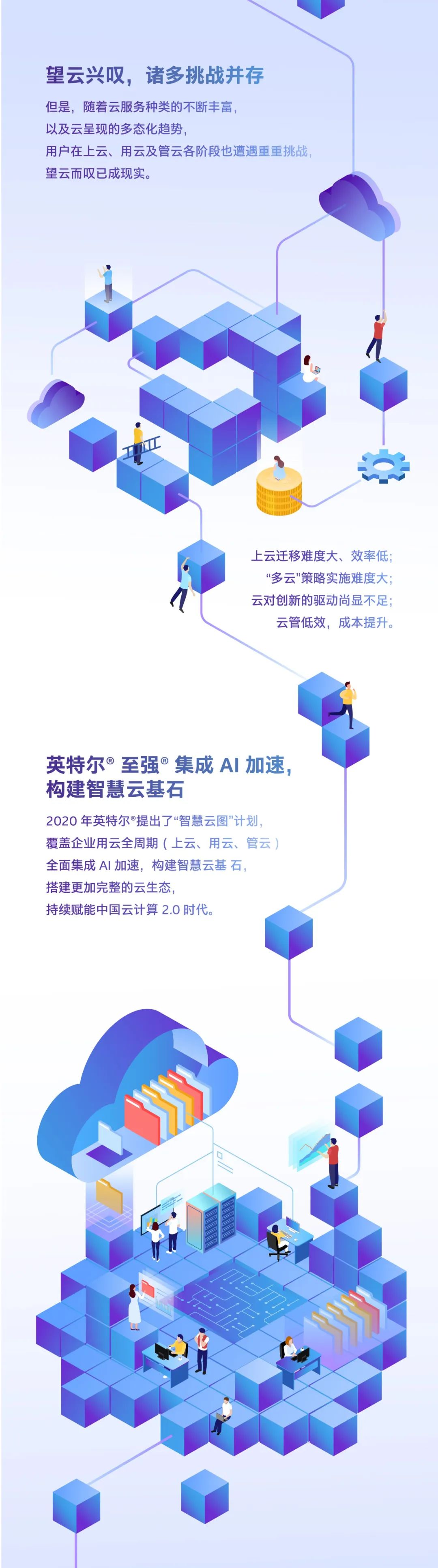 顺应行业发展趋势,英特尔致力于构建智慧云的基石。它于今年提出了“智慧云图”计划,旨在覆盖企业用云的整个周期,即上云、用云和管云全流程,通过第二代英特尔® 至强® 可扩展处理器、英特尔® 傲腾™ 持久内存、英特尔® 傲腾™ 固态盘和英特尔® FPGA等产品组合,全面集成AI加速,构建智慧云基石,搭建更加完整的云生态,持续赋能中国云计算2.0时代。