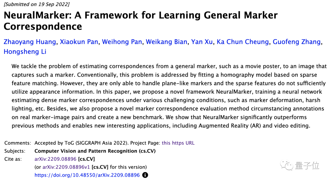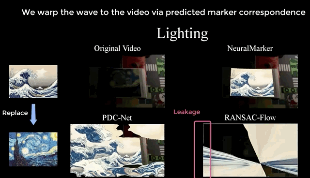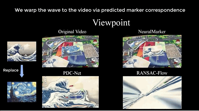 为了达到丝滑逼真的视觉效果,研究者们提出了一个新框架NeuralMarker,来捕捉标志物到参考图像的密集对应关系。
