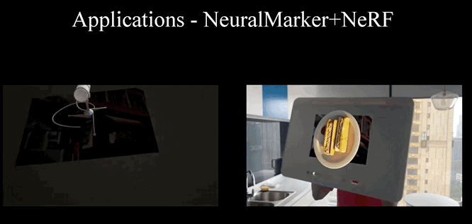 前文提到的“端盘子妙招”,其实是这群研究者把NeuralMarker和NeRF结合起来了,直接在二维的图片上加了一个三维物体。