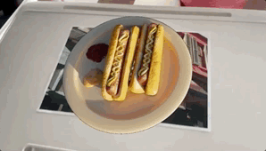 Emmm……其实细看的话应该还是能发现,这并不是什么端菜妙招(对不起~),这个盘子和热狗也没有被粘起来,而是后期合成的。