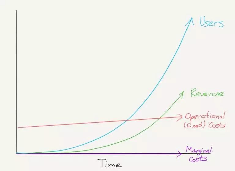 而可扩展性的实现前提是巨大且可能血本无归的资本开支,很少有人能够独立承担。VC 们看中了潜在的巨大收益,愿意把钱投给这种先花大钱搞开发,然后利用最小的边际成本快速扩张,实现 scalability 的商业模式。