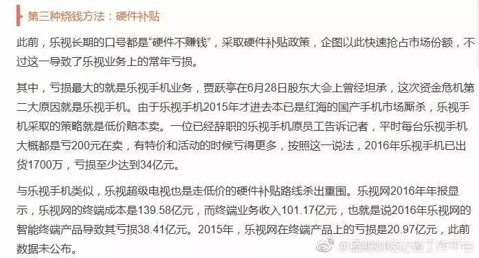 迈克尔杰克逊:烧钱的模式是把双刃剑。至少两年前,我就断言乐视会出问题,因为贾跃亭已经不是企业家,变成了资本玩家。