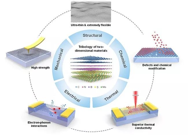 与二维材料摩擦学行为密切相关的结构、力学、电学、热学和化学特性