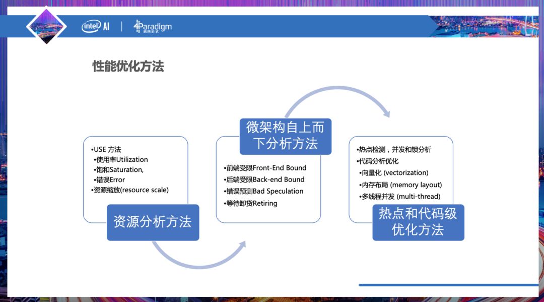 第三种是代码和热点优化方法,主要是包括热点检测,并发和锁分析,以及如何使代码特别对于AI的代码进行向量化、减少内部布局和多线程并发。