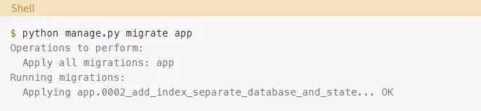 模型与数据库状态的分离是一个重要的概念。一旦你理解了它,以及知道如何使用它,你就可以突破内置迁移操作的许多限制。我想到的一些用例包括添加已经在数据库中创建的索引,以及为DDL命令提供特定的服务商参数。