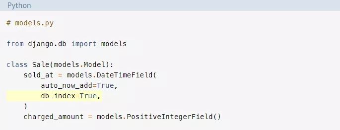 你将在一个名为app的应用中使用一个虚构的Sale模型。在现实生活中,Sale等模型是数据库中的主要表,它们通常会非常大,并存储大量数据: