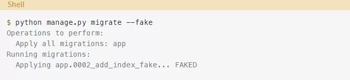 这一次Django没有抛出错误。实际上,Django并没有真正应用任何迁移。它只是将其标记为已执行(或FAKED)。