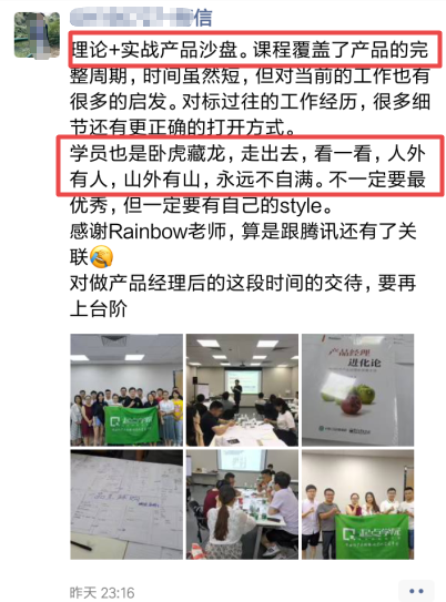 不妨看看《产品经理实战训练营》优秀学员高飞的心声: