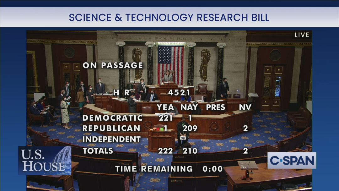 当地时间2月4日,美国众议院以222票赞成、210反对的投票结果通过了《2022美国竞争法案》。