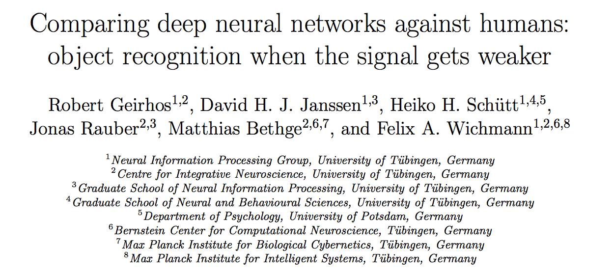 近日,来自德国 Tubingen大学和Potsdam大学的研究人员们共同发布了一项研究成果——深度神经网络和人类视觉在信号变弱时进行物体识别的差异对比。这些专家分别来自神经信息处理、综合神经学、心理学与生物控制等不同领域。此项研究旨在对DNN和人类神经系统的结构和处理过程的差别作出相应解释,并且找到在信号变弱时两种视觉系统的分类错误模式的不同。