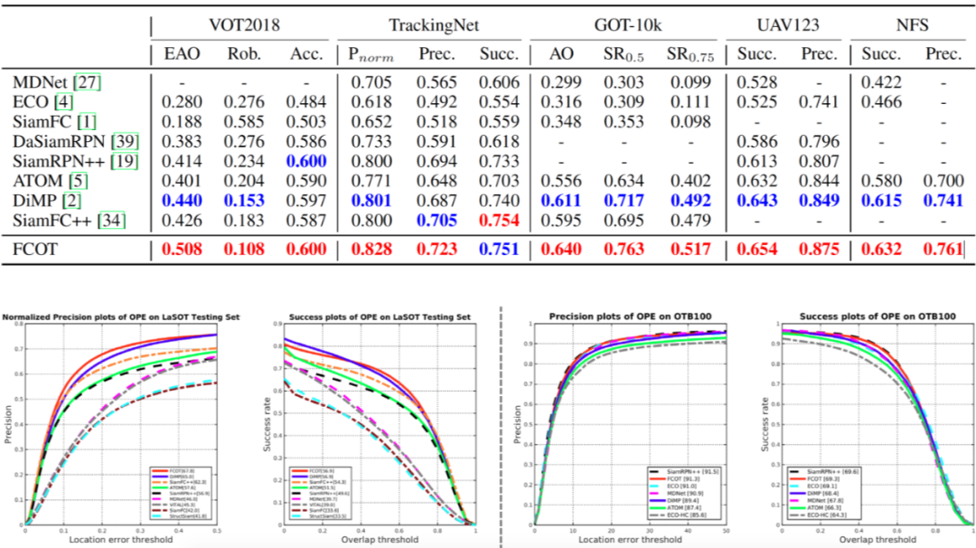 本文介绍我们在单目标跟踪领域的新工作 FCOT (Fully Convolutional Online Tracking),目前在 VOT2018 / LaSOT / TrackingNet / GOT10k 等多个数据集上达到了实时 trackers 的 state-of-the-art 效果,并且能达到 47fps。