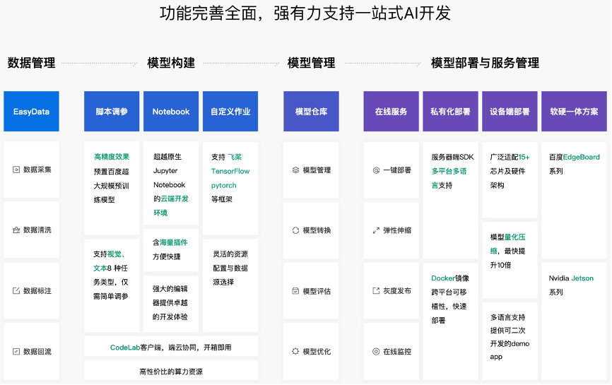 BML为企业和个人开发者提供机器学习和深度学习一站式AI开发服务,并提供高性价比的算力资源,助力企业快速构建高精度AI应用。BML提供了从数据采集、数据清洗、数据标注、智能标注与多人标注、模型训练生产到模型管理、云端及离线推理服务管理等AI开发过程的全生命周期管理。