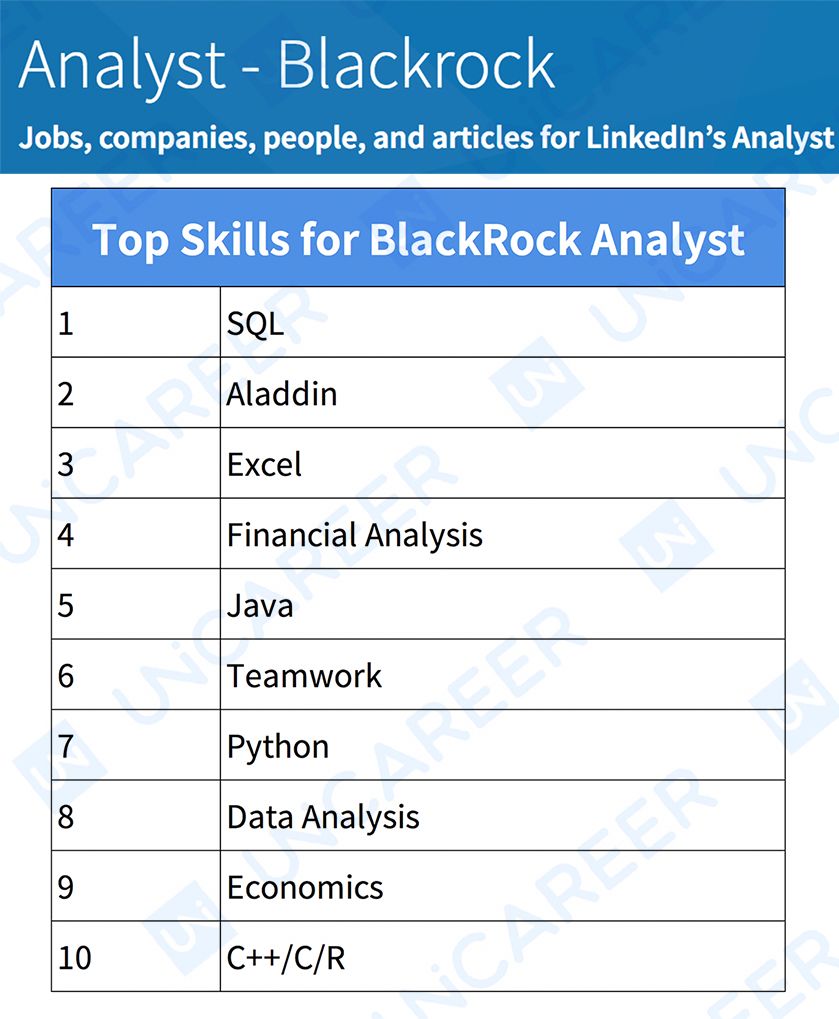LinkedIn分析了7853位领英上的BlackRock入门级分析师的简历和资料,总结出了买方资管名企Analyst的必备技能: