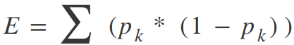 其中,Y 是真相,Y-hat 是预测值;我们对数据集中的所有样本求和来获得总误差。对于分类,我们使用基尼指数函数: