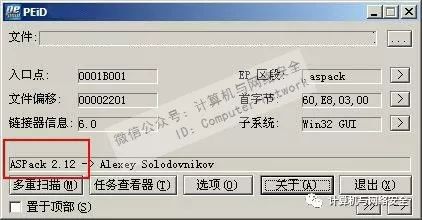 壳的识别是通过特征码来进行的,特征码的提取通常是选择文件的入口处。壳会修改程序的入口处,因此对于壳的特征码来说选择入口处比较合适。我们的工具主要是用来学习和演示用的,因此写的查壳工具要能识别两种类型,第一种类型是可以识别用Visual C++6.0编译出来的文件,第二种类型就是可以识别ASPack加壳后的程序,当然ASPack加壳工具的版本众多,这里只要能识别上面演示的那个版本的ASPack就可以了。