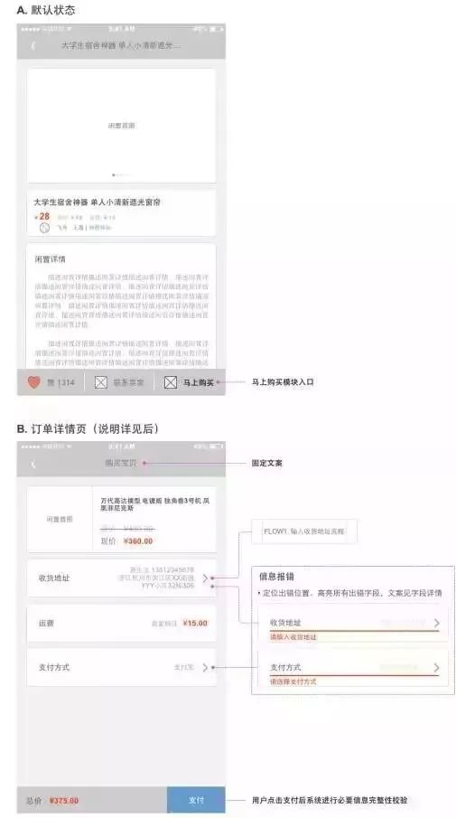 用户已决定购买当前闲置物品,点击马上购买跳转至购买流程,马上购买模块详见4.2.4.4。