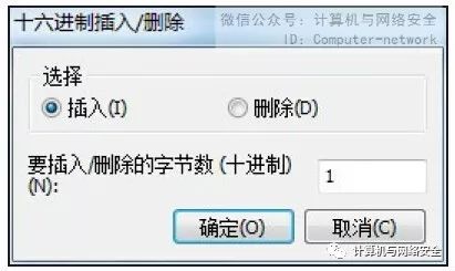 步骤05:在UltraEdit编辑工具中还可以插入或删除十六进制数据。在UltraEdit主窗口中选择“编辑”→“十六进制功能”→“十六进制插入/删除”菜单项,即可打开“十六进制插入/删除”对话框,如图5所示。