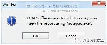 步骤11:单击“保存”按钮,即可返回到比较文件/硬盘对话框,在其中可看到报告的具体保存位置,如图35所示。单击OK按钮,即可打开可以用记事本程序查看报告【提示】框,如图36所示。