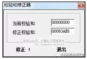 步骤09:在PEditor 1.7主窗口中单击“校验和”按钮,即可打开“校验和修正器”对话框,在其中输入当前校验和与修正校验和,如图51所示。单击“修正”按钮,即可打开“校验和更新成功”【提示】框,如图52所示。