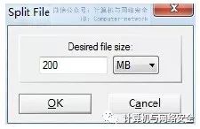 步骤14:单击Split(分割)按钮,即可打开Desired file size(定义文件大小)对话框,在其中设置文件的大小,如图39所示。