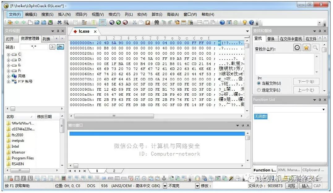 步骤01:下载并安装UltraEdit,双击该工具的快捷图标,即可打开UltraEdit主窗口。在UltraEdit工具中可以查看各种应用软件的十六进制编码,如图1所示。