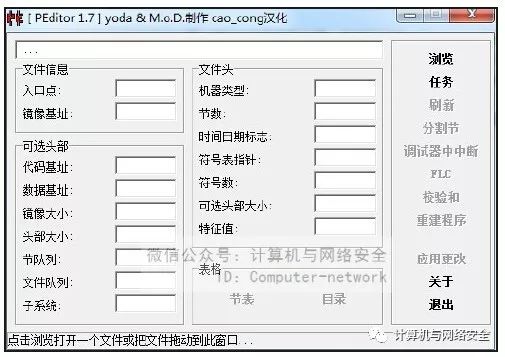 步骤01:下载并运行PEditor 1.7汉化版程序,即可打开PEditor 1.7主窗口,如图41所示。单击“浏览”按钮,即可打开“选择你要查看的文件”对话框,如图42所示。