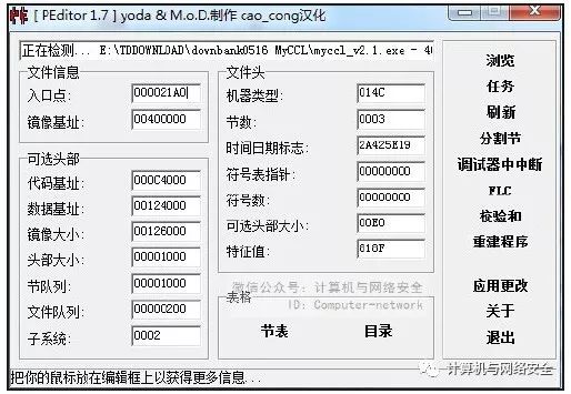 PEditor是一款PE文件编辑工具,有转存进程、在SoftICE中插入中断、编辑PE文件的导入表、节表、重建校验和重建程序等功能。与其他PE编辑工具相比,PEditor可把所有的功能都集中在主窗口中,从而方便修改PE文件。使用PEditor编辑PE文件的操作步骤如下。