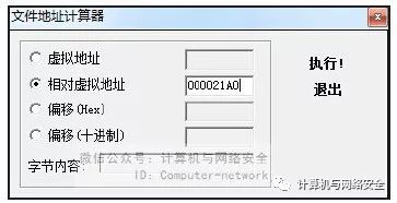 步骤08:单击“执行”按钮,即可计算出输入的“相对虚拟地址”对应的虚拟地址、十六进制偏移、十进制偏移以及字节内容,如图50所示。