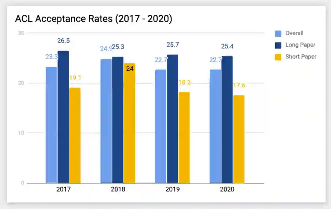 ACL2020 即将开幕!早在一个月前,ACL 官方就已经给出了本次大会的一般统计,涵盖了 ACL2020 的接受率、与之前接受率的比较、不同方向接受率和一些国家的统计数据。本月开始,ACL 官方将会逐步放出有关提交、评论和其他主题的统计数据。