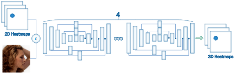 最近,基于热图回归(heatmap regression)的完全卷积神经网络架构彻底改变了人体姿态估计,即使对于最具挑战性的数据集也得到非常高的准确度。由于它们对端到端训练和人工工程的需求很少,这种方法可以很容易地应用于人脸对齐问题。