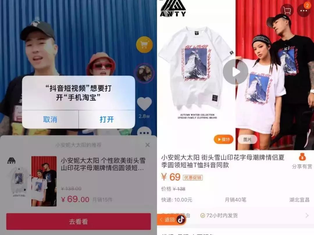 2018年3月26日晚间,有人发现抖音开始批量出现关联淘宝的卖货链接——多个百万级以上的抖音号中,出现了购物车按钮,点击后便出现商品推荐信息,该信息直接链接到淘宝,可以完成跳转和购买,体验较为顺畅。