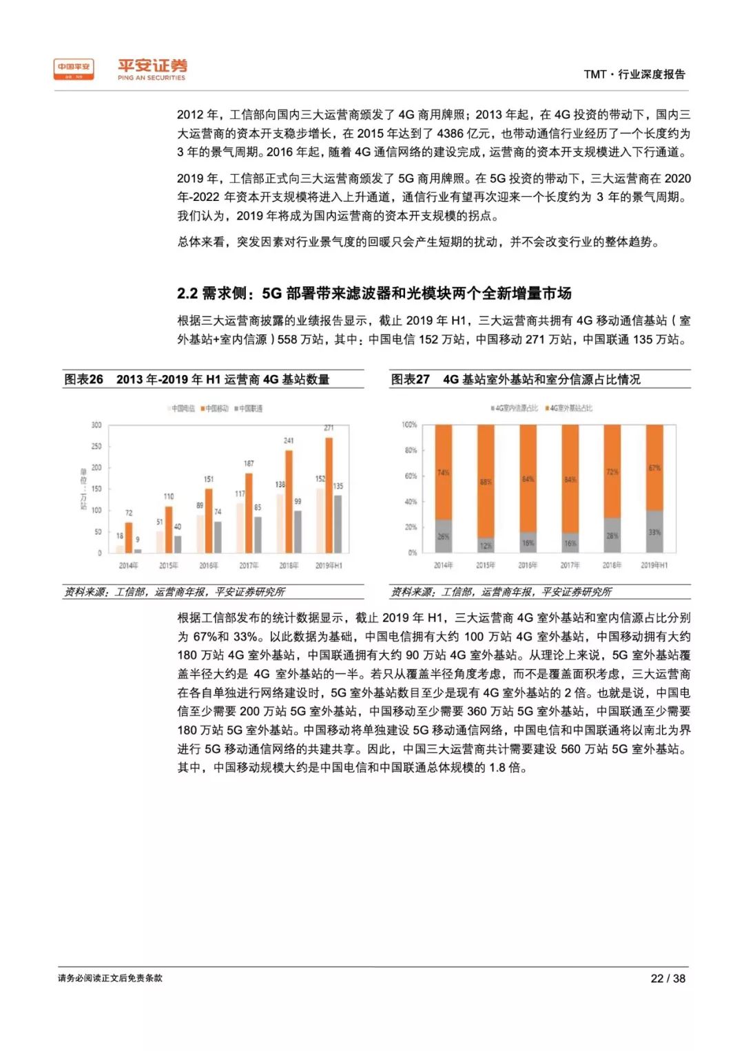 2.2 需求侧:5G 部署带来滤波器和光模块两个全新增量市场