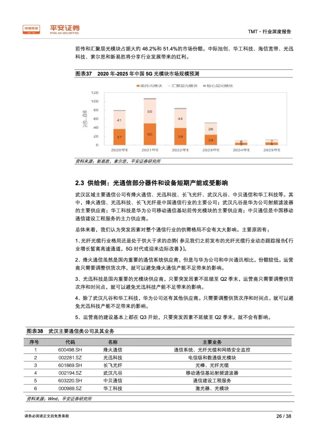 2.3 供给侧:光通信部分器件和设备短期产能或受影响