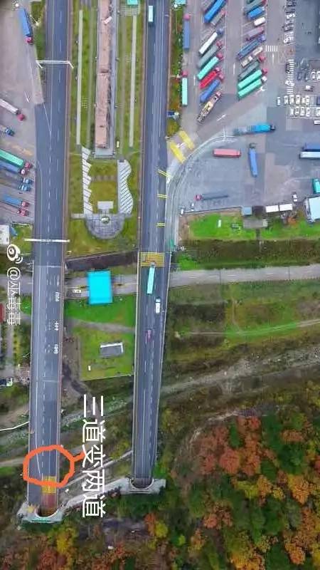 据了解,其实这条车道出现的原因是,一号隧道旁边还有2号隧道,两条隧道中间有一个服务区,为了照顾服务区的车驶入主线,必须增加一条汇入车道,这是导致外面车道比隧道更宽的主要原因。然后接近隧道口,通过地面标线明确变为两条车道。据了解,汇入车道在200米左右,变道距离比较局促,这种路况和设计属于个案情况。
