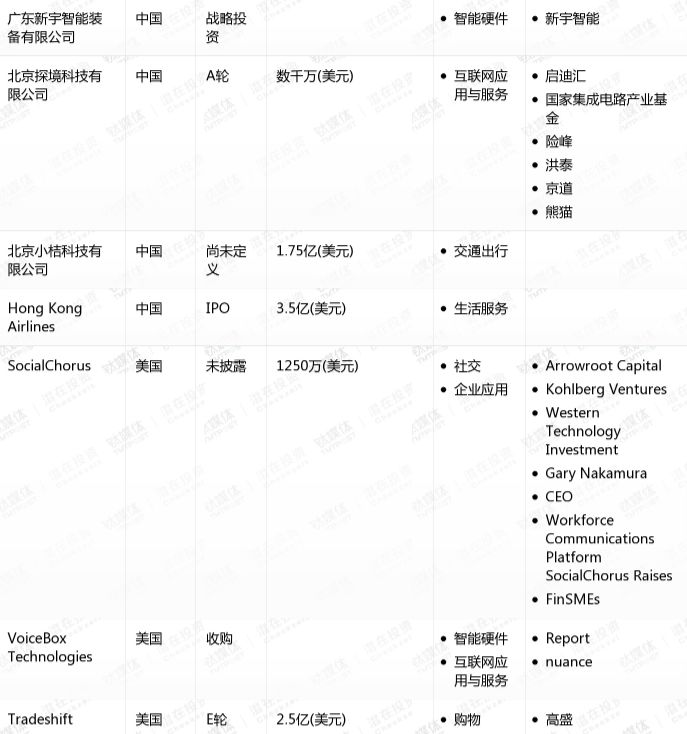表:2018年05月30日 海内外科技领域投融资事件(钛媒体Pro制表)