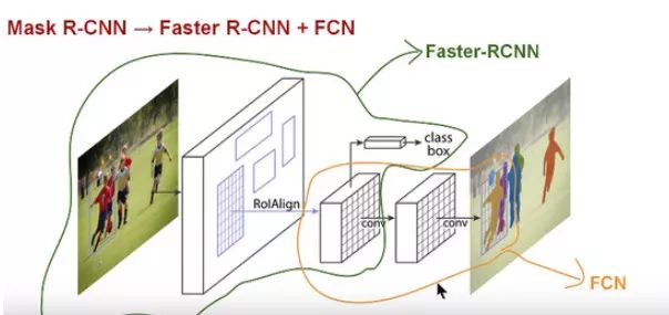 因此,Mask RCNN 可以说是将 Faster RCNN 和「全卷积神经网络」这两个网络合并起来,形成的一个庞大的网络架构。